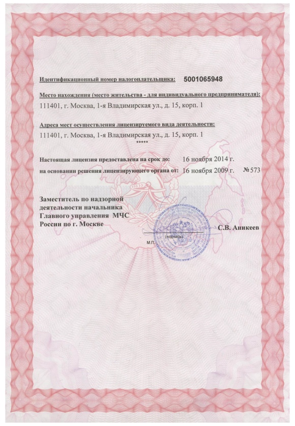 Лицензия Главного управления МЧС России по г. Москве